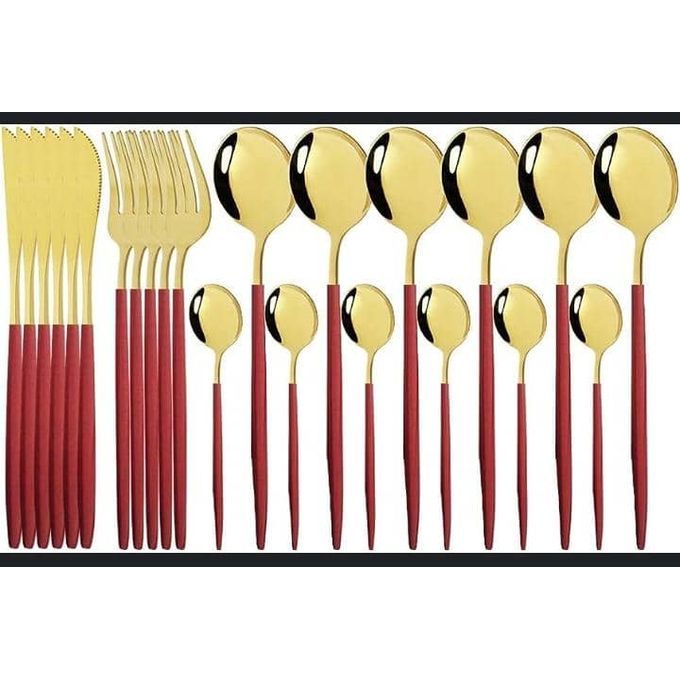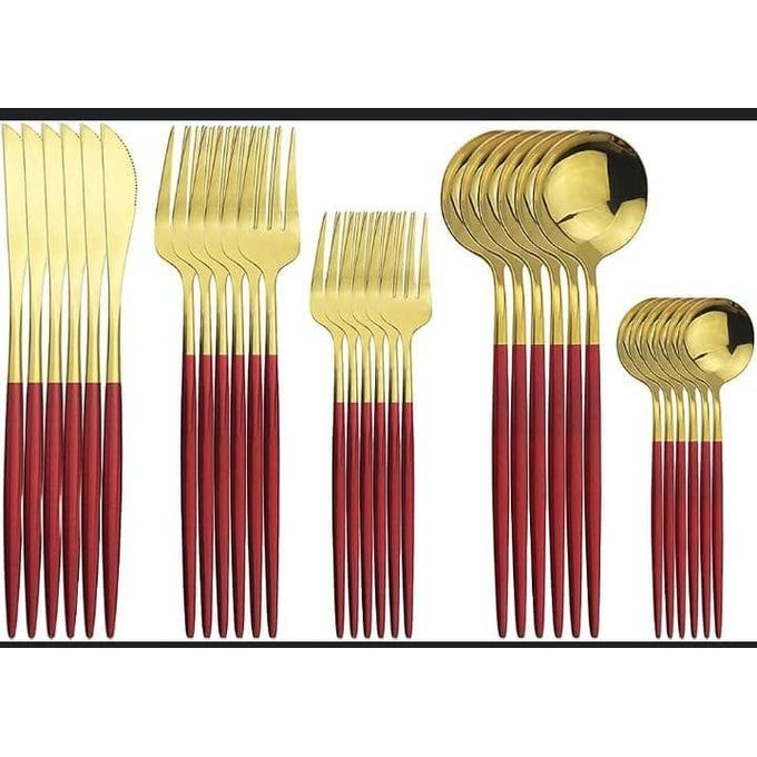 This cutlery set made from stainless steel is beautifully and effectively designed to meet your dining needs. It consists of 24 pieces - 6 knives, 6 forks, 6 table spoons. It is dishwasher safe and this makes it suitable for everyday use. It is also durable and undoubtedly a unique and important addition for every home. This cutlery set made from stainless steel is beautifully and effectively designed to meet your dining needs. It consists of 24 pieces - 6 knives, 6 forks, 6 table spoons and 6 tea spoons. It is dishwasher safe and this makes it suitable for everyday use. It is also durable and undoubtedly a unique and important addition for every home.