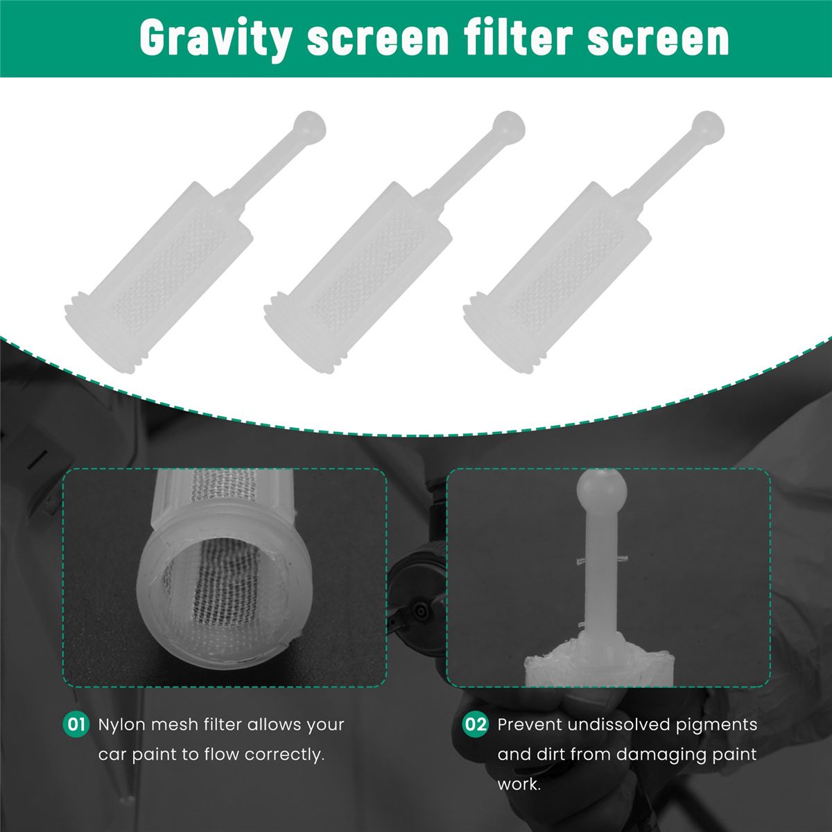 Highly effective in removing contaminants from paint in gravity feed spray gun - Prevents undissolved pigments and dirt from spoiling paint jobs - Easy to clean
