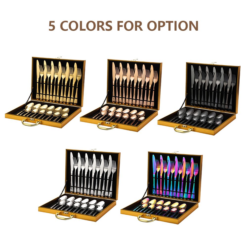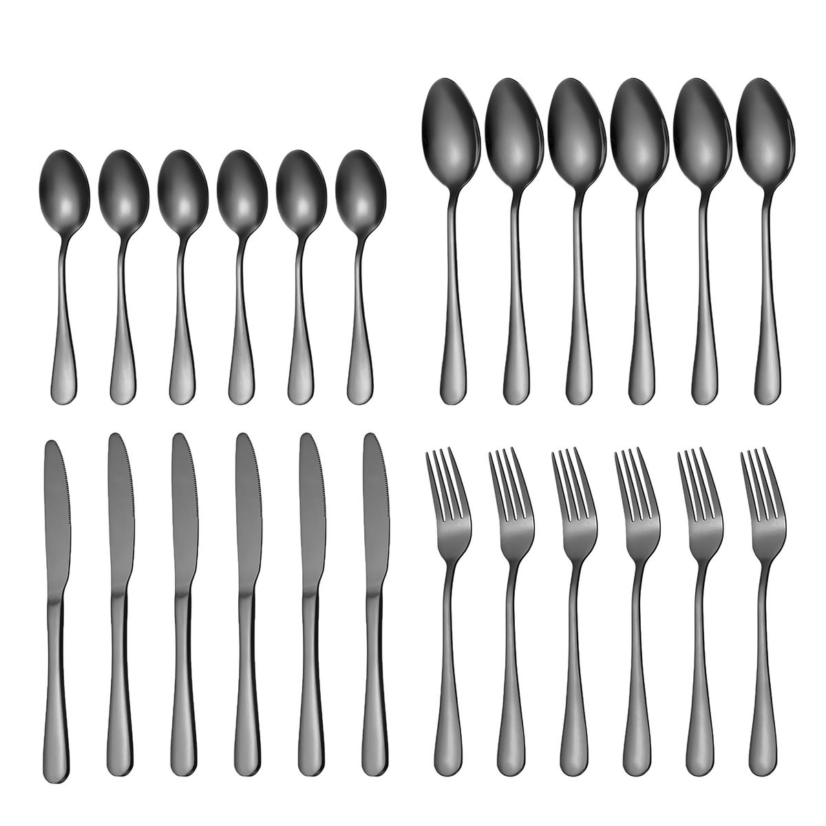 The 24-piece flatware set includes 6 dinner knives, 6 dinner forks, 6 table spoons and 6 tea spoons, service for 6 persons, suitable for home kitchen, restaurant, hotel, etc.