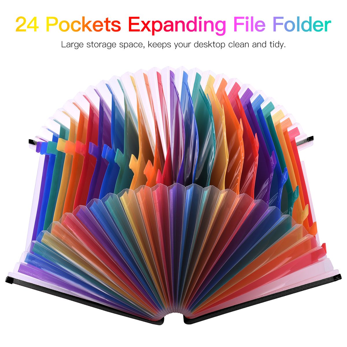 24 pockets expanding file folder, large storage space, keeps your desk clean and tidy.