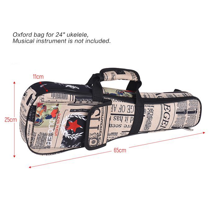 This padded 24" ukelele bag is adequate enough to protect ukelele from bumps during transport and carrying. It has two separate compartments for storage - one main zipped compartment for ukelele and the other pocket for sheet music, picks, straps and other accessories. Its backpack type straps on the back and gripped handle on the side ensure instrument can be carried however the user wishes to.