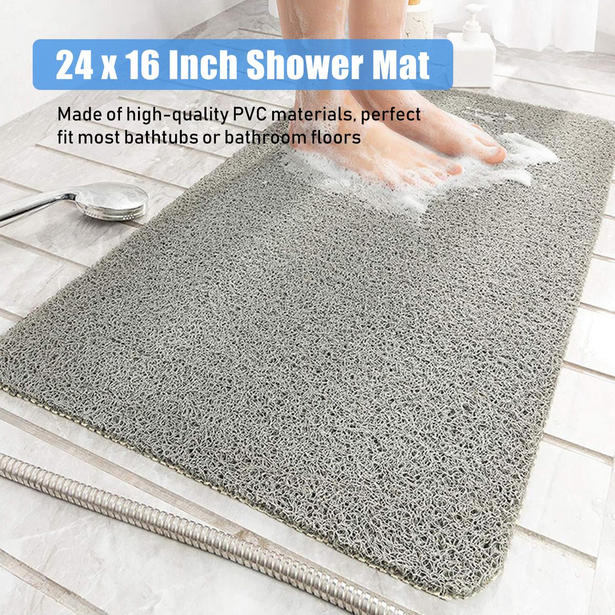 24 x 16 Inch shower mat is made of high-quality PVC materials, perfect fit most bathtubs or bathroom floors. It totally allowed the water to drain through to the shower drain without any backup of water. The backing is securely attached and loofah style material feels comfortable and also helps prevent slipping.