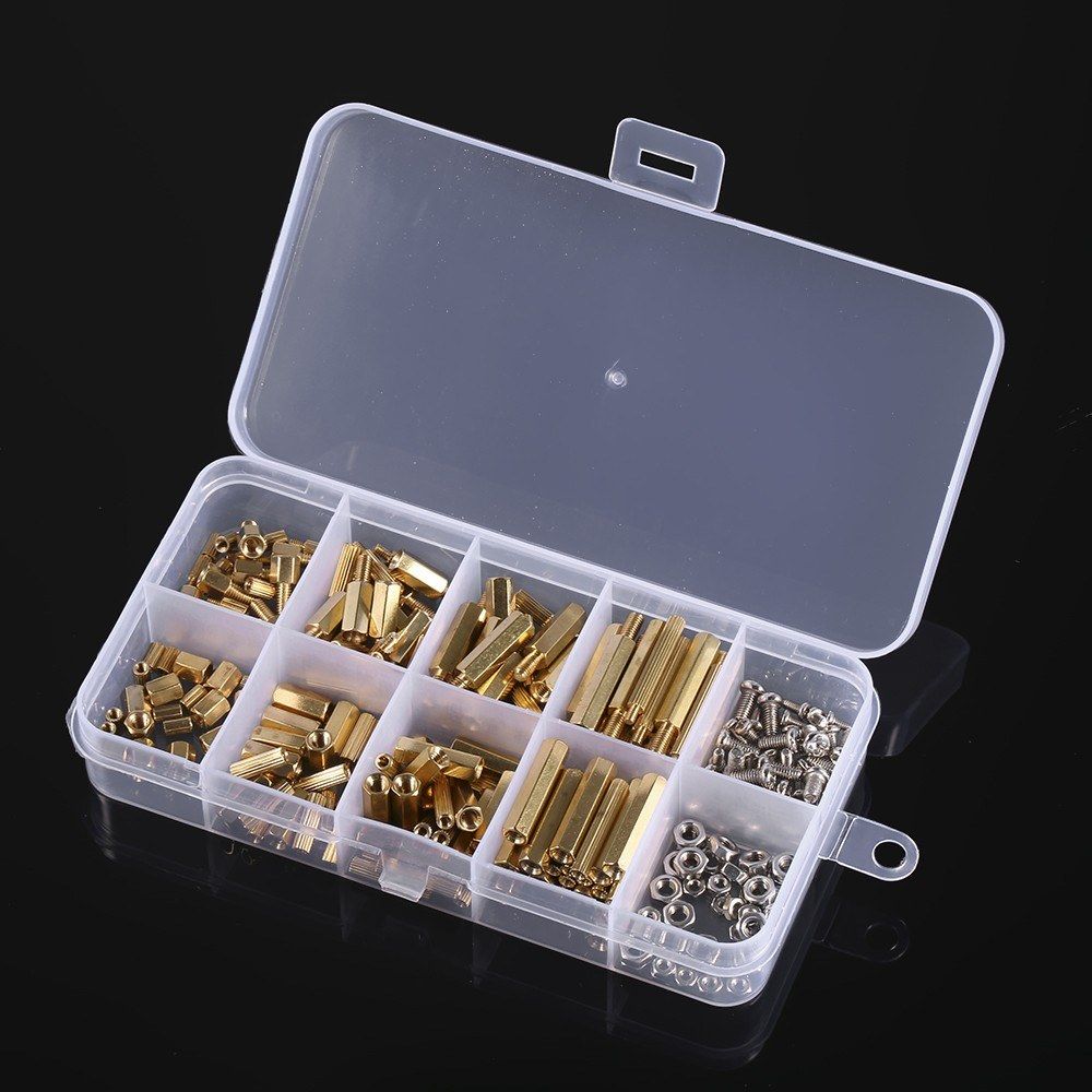 Includes Female-Female, Female-Male standoffs in different sizes, screws and nuts.