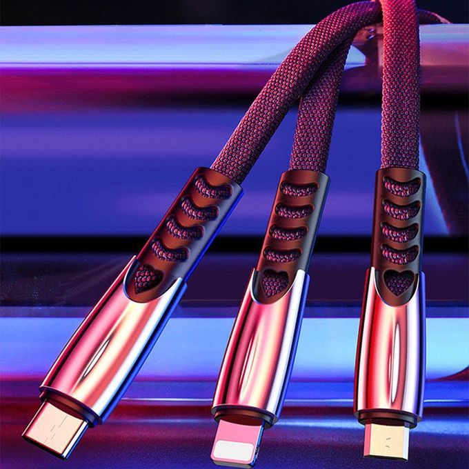 2.4A Shark Fin One-to-three Data Able Zin Alloy Three-in-one Harging Able-Three Colors Optional-length: 1.2m