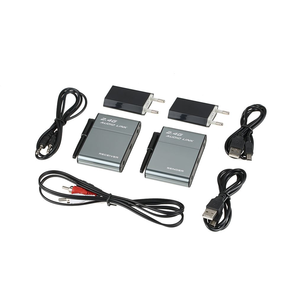 BX501 2.4GHz ISM band wireless audio adapter is designed to wirelessly transmit high quality music at 2Mbps super speed. 50 meters ultra far distance free transmission range with real-time digital encoding technology, which ensures low-latency. Non-interfering 16 channels with memory function, strong coexistence. With buil-in 320mAh li-poly battery in sender box and charging protective circuit in both boxes, crystal clear indicator lights display working and charging status. It is the perfect portable wireless audio adapter for the home entertainment, business meeting and various outdoor activities\' wireless devices expansion.