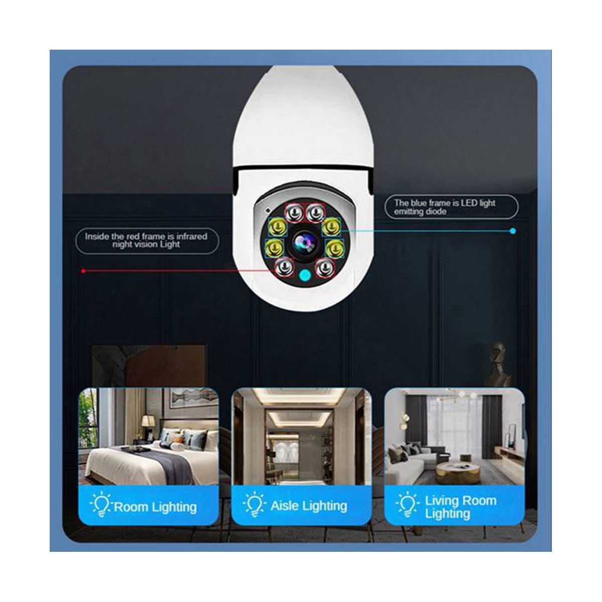 [Two-Way Audio and Cloud Storage]: Built in high quality Mic and speaker,the bulb security camera allows you to communicate with family through the app whenever & wherever you are, which is a perfect monitoring system for schools, offices and homes.