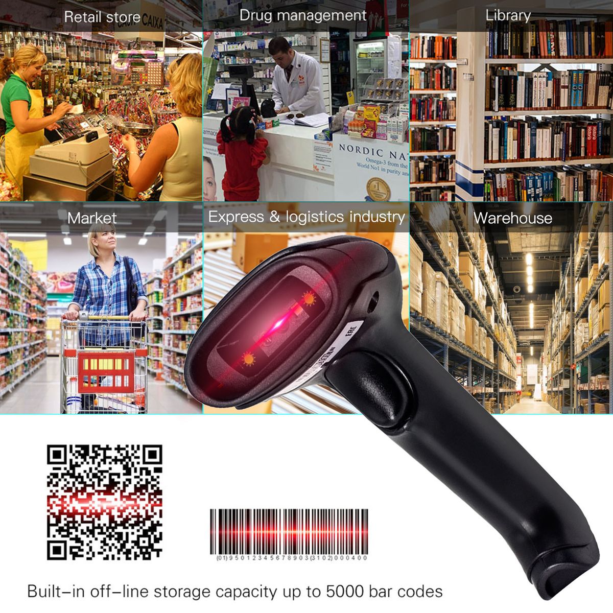 Built-in off-line storage capacity up to 5000 bar codes, compatible with window XP,7,8 amp; 10 system.