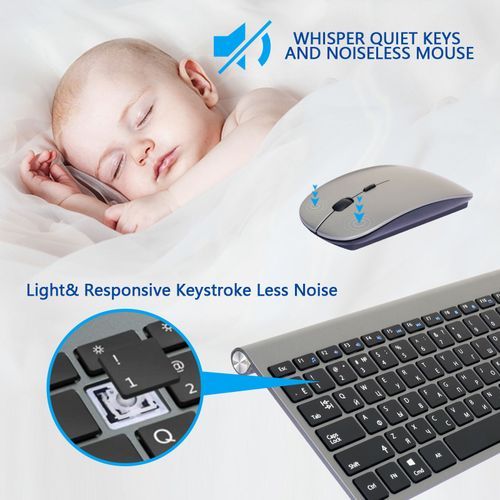 Feature:Slim wireless keyboard and mini optical mouse with USB receiver.