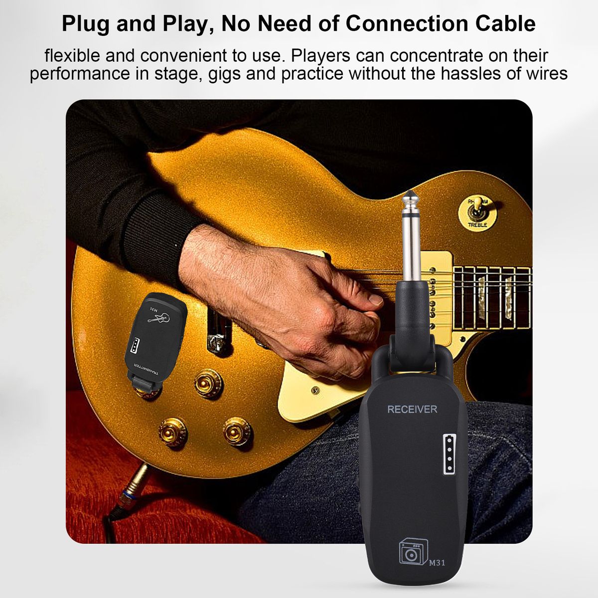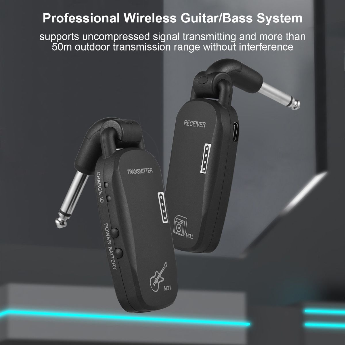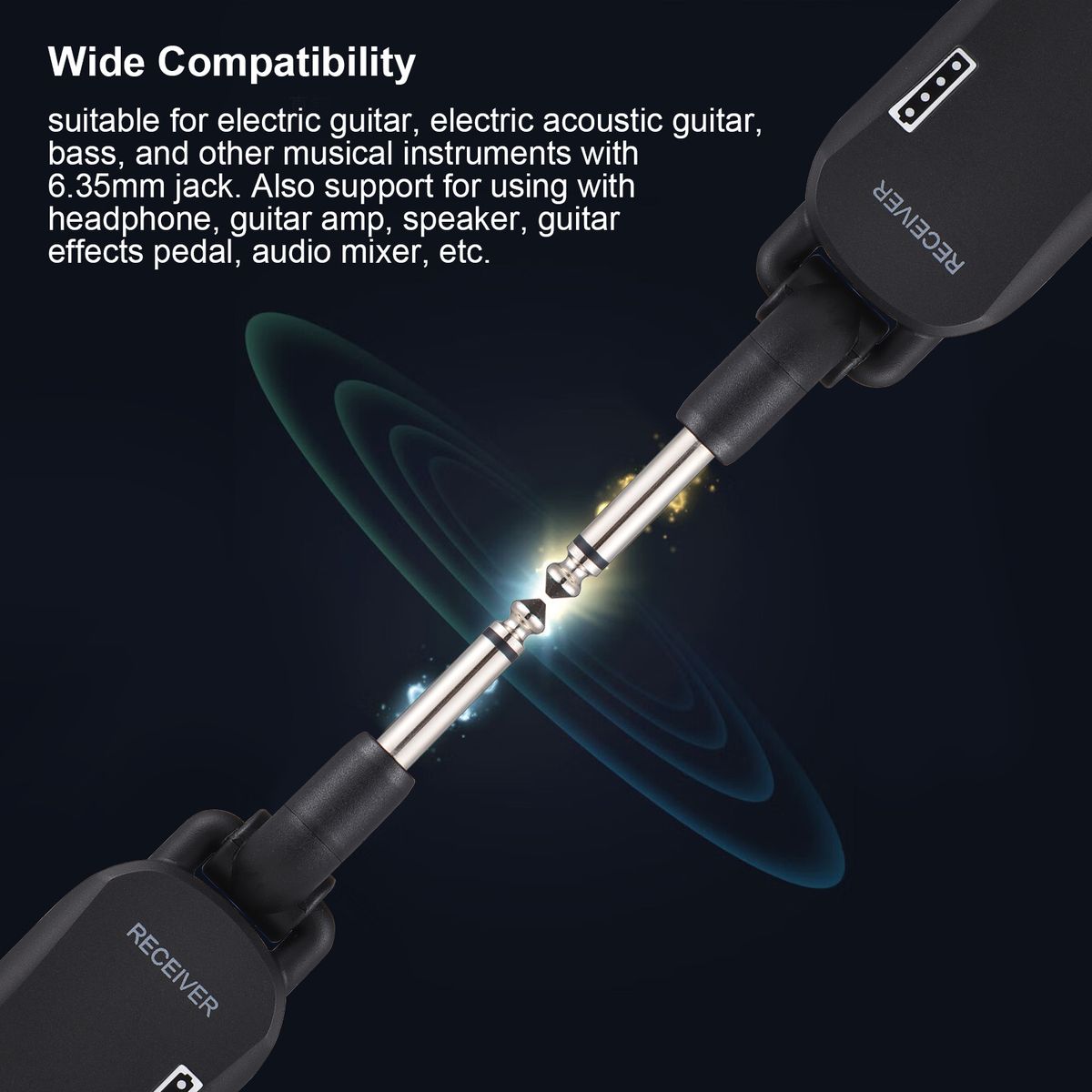 Professional Wireless Guitar/Bass System: supports uncompressed signal transmitting and more than 50m outdoor transmission range without interference.