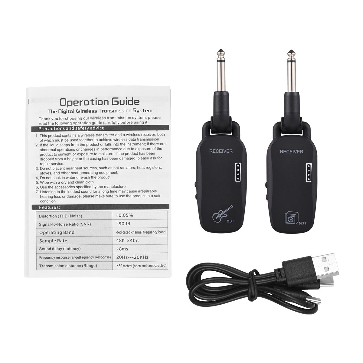 Features:Professional Wireless Guitar/Bass System: supports uncompressed signal transmitting and more than 50m outdoor transmission range without interference.
