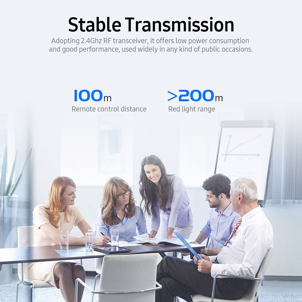 Stable Transmission. Adopting 2.4Ghz RF , it offers low consumption and good performance, used widely in any kind of public occasions.