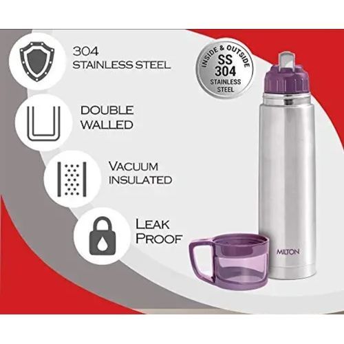 Insulation type: Double wall; Temperature retention: Yes (Keeps liquid hot/cold upto 24 hrs); Leak proof: Yes