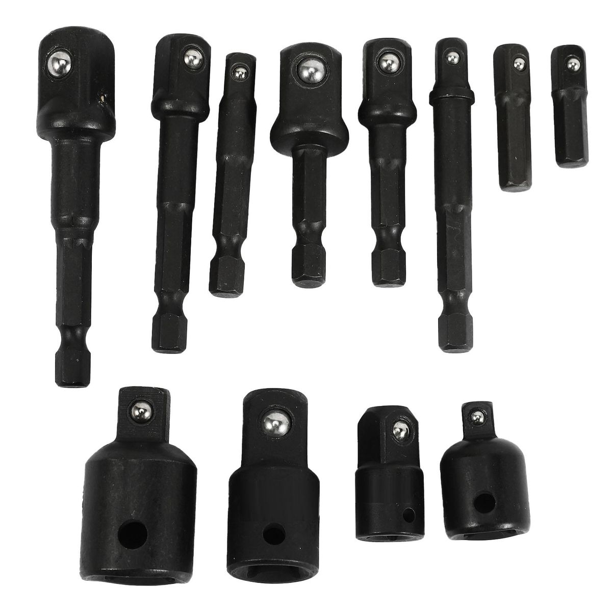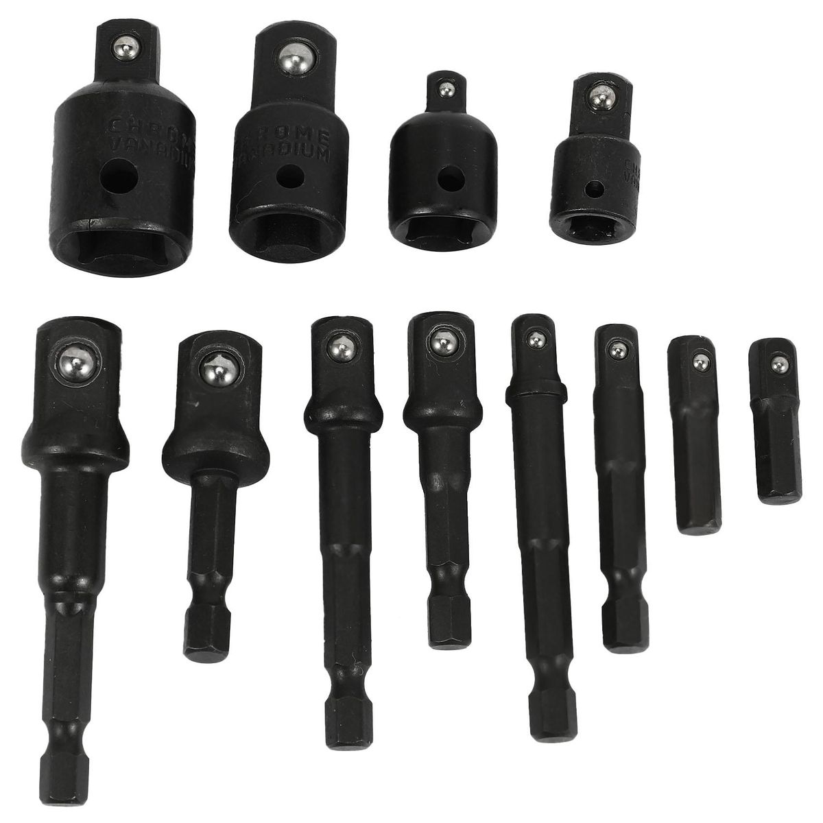 This black oxide coated heat treated vanadium steel socket adapters are in line with all of power drills.