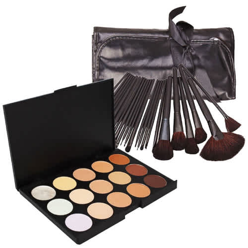 Buy 24pcs Professional Makeup Brushes - Black + 15 Colors Concealer Makeup Pallete in Nigeria