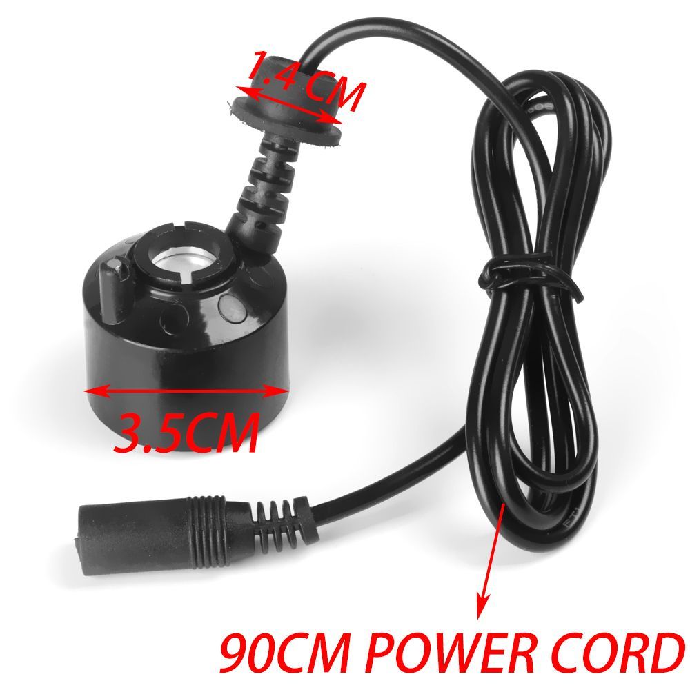 Type: Mist MakerBody Material: ABSCable length: 90cmApplication: Fountain/Rockery Water/Bonsai ectPower: 1A/24V (need to 24V power supply)Interface Type:2.1x5.5mm/2.5x5.5mm(Note: This item is only a Mist maker, the AC adapter is not included!)Attention:1. Do not turn over the Mist Maker When the switch is turned on,keep upright,or it may damage the atomizer.2. Please ensure that the daily running time is le than 10 hours, otherwise the life of atomizing slice will be shorted.3. Don't touch the atomizing slice while the Mist Maker is working.4. Ensure the water at high quality, use clean tap water.(water quality deterioration may influence the lifetime)5. Please switch off the power before Movement or maintenance.6. The atomizing slice is consumable,and its service life is3000 hours.If marked reduction of Mist present, please clean atomizing slice with a cotton swab(don't need to use any detergent).Keep it clean.If marked reduction of Mist still present ar cleaning,please change a new atomizing slice.(Recommend to buy another atomizing transducer slice)Note: This product can not be directly used,it need 100V-220V transformer, output voltage is 24VFeatures:Made of high quality material, safe and durable to use.Can effectively moist air.Easy to operate, long service life, s-protection.Ideal for indoor or outdoor fountains, water feature, and office use.Add a stunning mist effect to your pond or water tank to filter the bad smell with electro and ultrasonic technology. Package:1 x Mist Maker(Note: This item is only a Mist maker, the AC adapter is not included!)