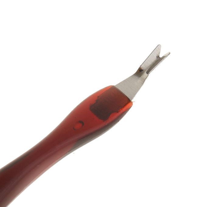 Sharp V-shaped safely and quickly trims excess cuticles and hangnails