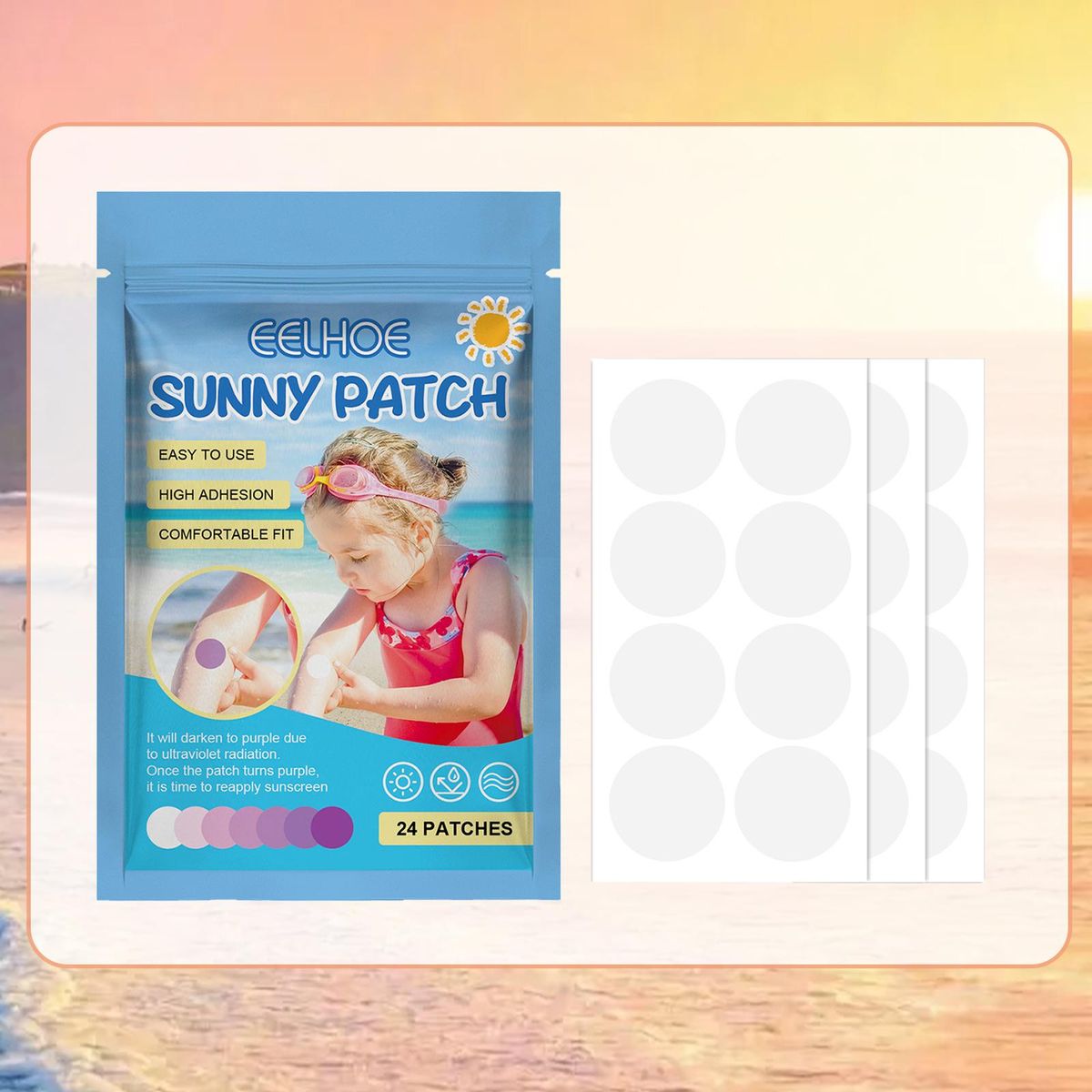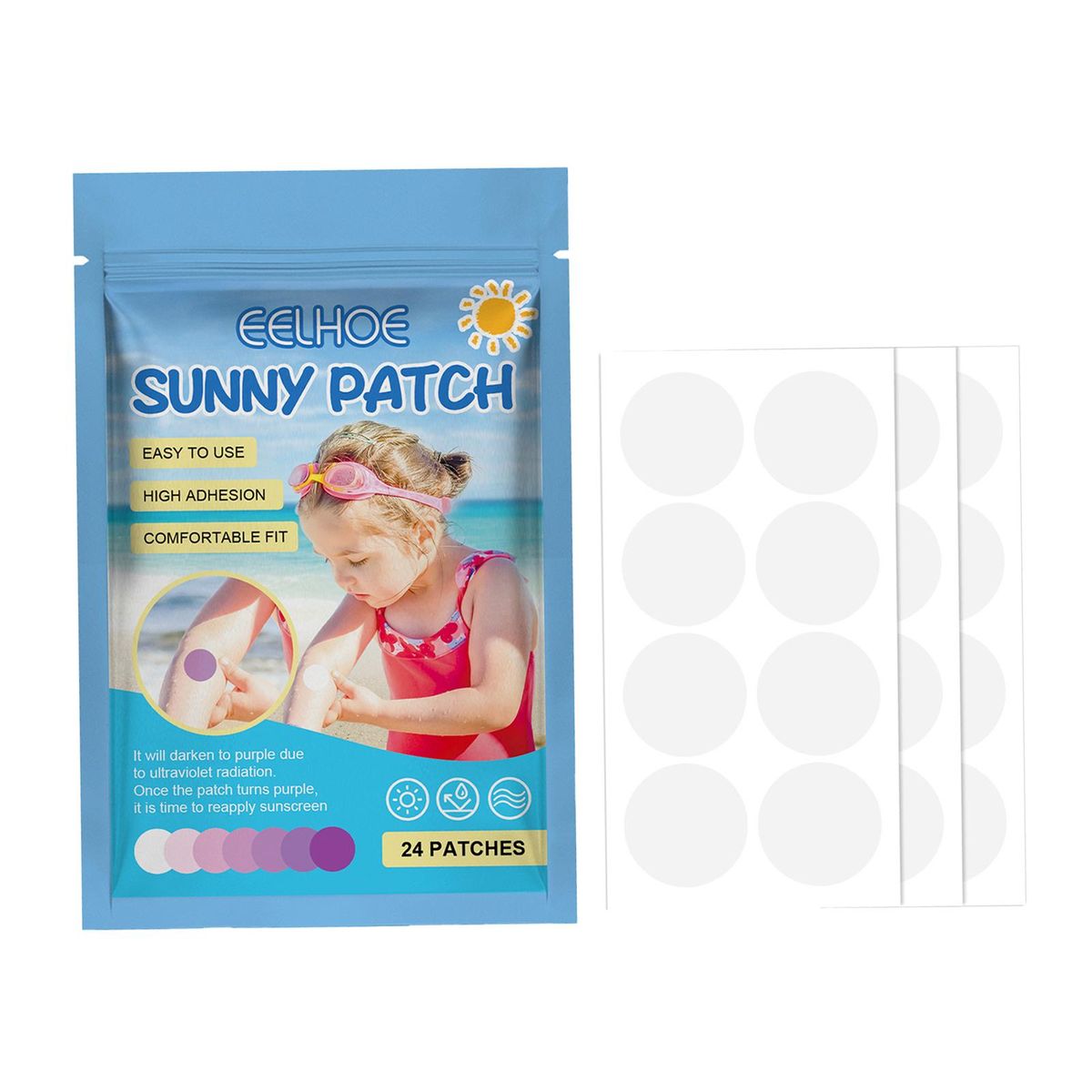 【How to use】: Apply detecting stickers to your skin, when the patch is transparent, you are protected, when the patch turns , you need to reapply sunscreen.