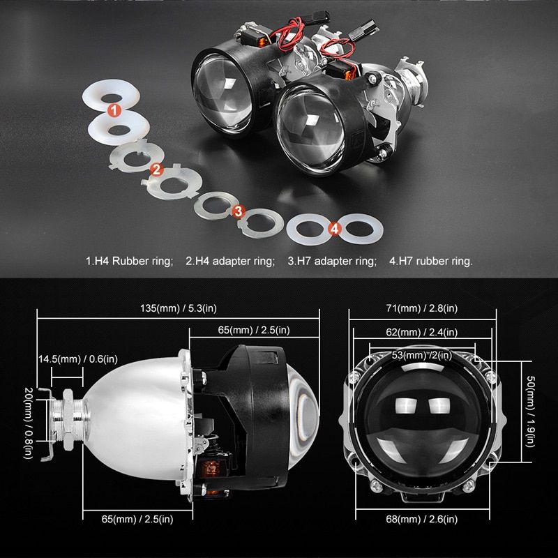 Universual 2.5 inch Mini Projector Len Fit H4 H7 Socket Car Headlight Use H1 HID Bulb For DIY Retrofit Replacement Auto Headlamp