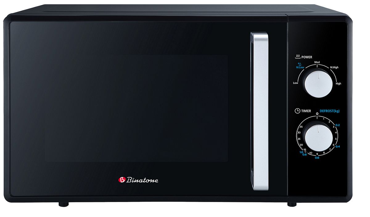 Binatone's 25L microwave oven uses 2450MHz frequency and offers unparalleled features including 5 microwave power levels, along with defrosting selection, a rotating glass plate, and a cooking end signal after the entered time has ended. It's designed to make your life easier.