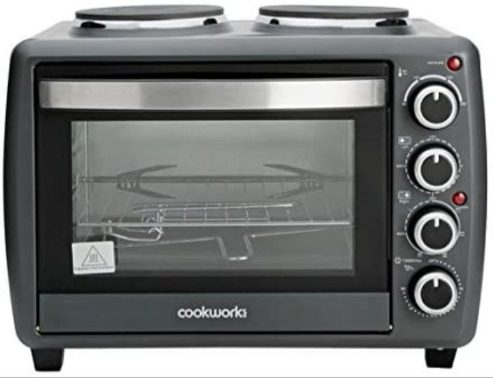 - Clear the kitchen counter and make way for the Cookworks mini oven with hob. With a large and small hotplate, it's just as good as a main oven but far more compact! Its large 28-litre capacity is great for generous lunches and plentiful dinners.