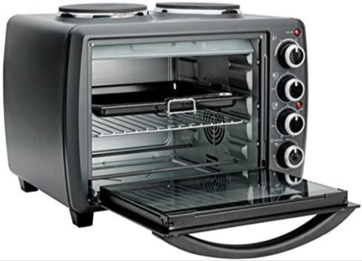 Clear the kitchen counter and make way for the Cookworks mini oven with hob. With a large and small hotplate, it's just as good as a main oven but far more compact! Its large 28-litre capacity is great for generous lunches and plentiful dinners.