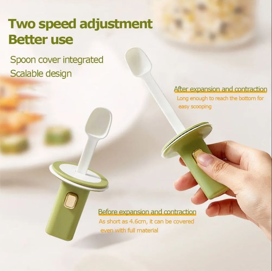 Easy to use: The spice jar is designed with a telescopic spoon, which is useful.