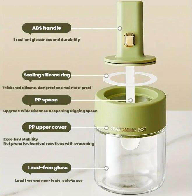 Fine Material: The spice jar is made of PP, ABS and fine glass, which is not easy to break.