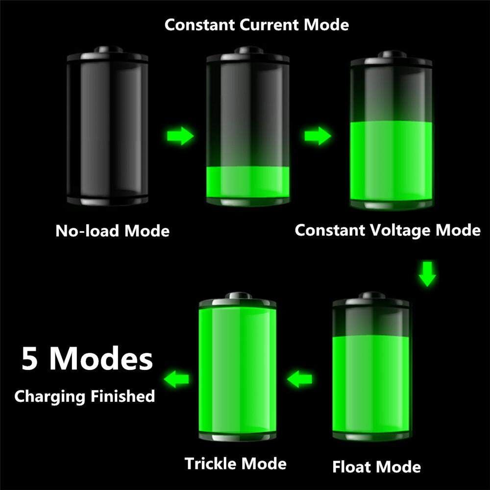 - Five Charging Modes: No-load Mode/Constant Current Mode/Constant Voltage Mode/Float Mode/Trickle Mode