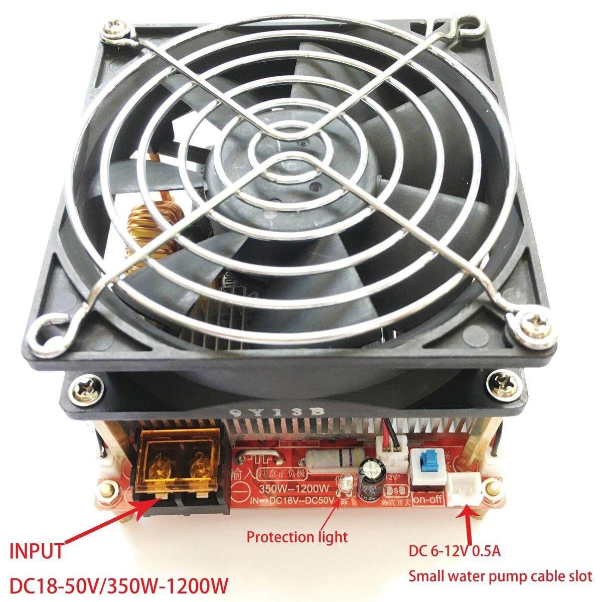 Specifications Name: 25A ZVS Induction Heating Board Model: 859178 Working Voltage: 18-50V, between 350W to 1200W. Working Frequency: 100KHZ--125KHZ Working Current: 25A () Over-current Protection: Current is more than 25A into shutdown protection, LED flash.(Oversize material) Under-voltage Protection: Input voltage is less than 16V under-voltageprotection, LED flash. Overheating Protection: tube temperature too high, enter Overheating Protection, LED flash. (Protect current down to 20A) Features Please installed the copper coil and water pump, then connect the supply. (can not empty load) Uses: DIY small parts made of steel hardening, annealing below the melting point of 1000 ℃ metal smelting, DIY small cooker and so on. This item no included supply, need supply 18V to 50V, between 350W to 1200W. Package Included 1 x ZVS induction heating plate 1 x Ignition coil