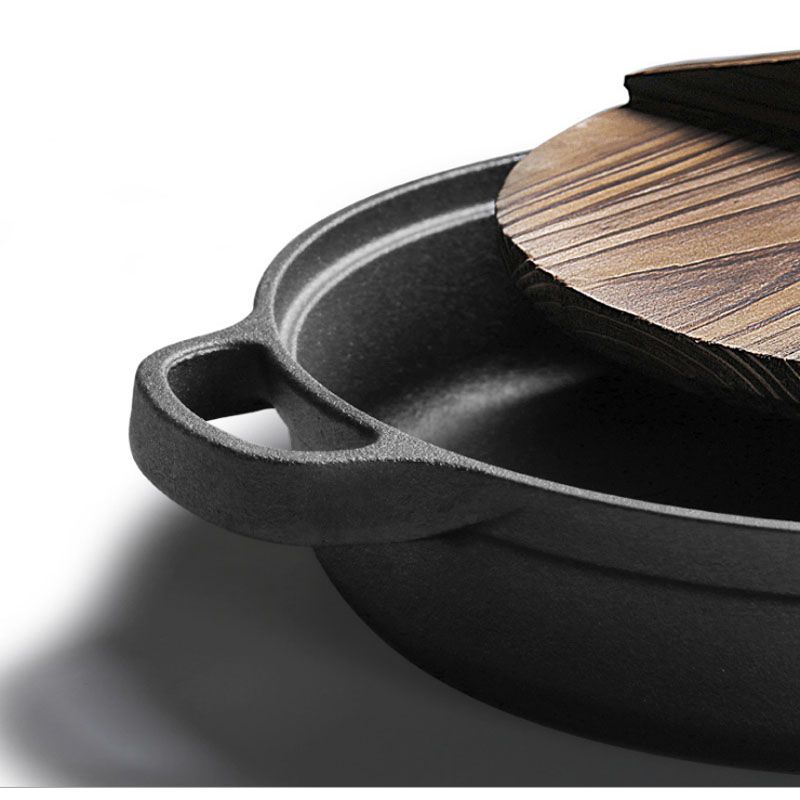 25cm Cast Iron Frying Pan with Wooden Cover Pancake Pan Uncoated Pan Frying Pan Induction Cooker Universal Cookware