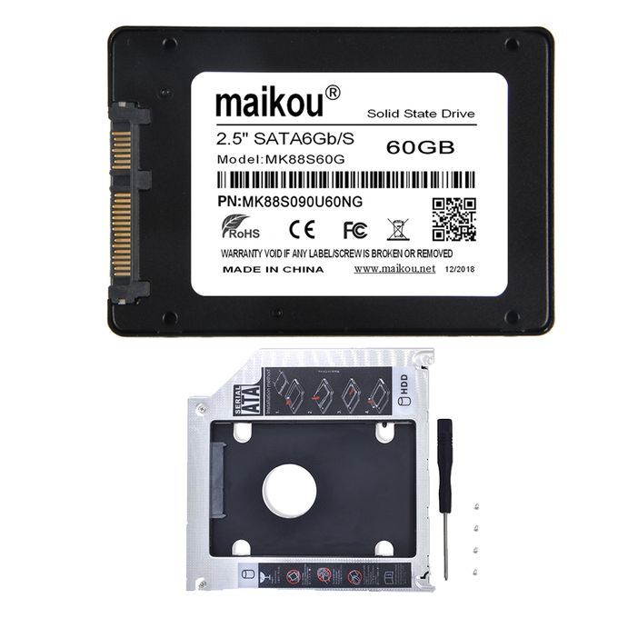 2.5'' 60G SSD Internal Solid State Drive+9.5mm Optical Bay Caddy Black