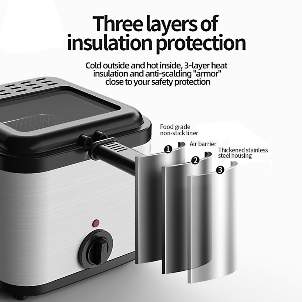 1. This is a small household electric frying oven, the capacity of 2.5L is just suitable for family use, in leisure time, you can cook French fries, donuts, fried chicken, mozzarella sticks and other fried food for the family, safe and