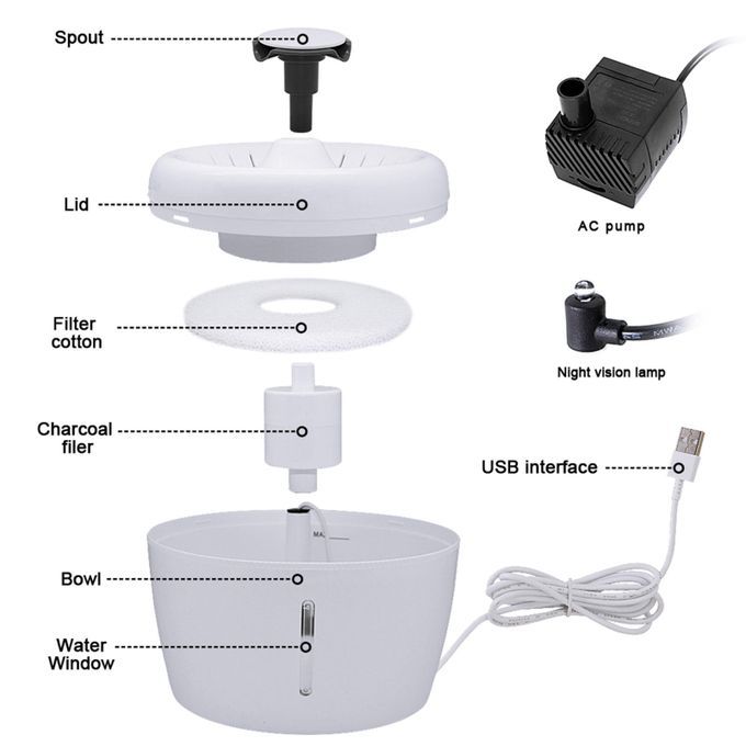 Visible Water Level Window: The pet fountain includes a water level window with led light in order to better monitor the overall water consumption of your pet, reminding you of the water shortage.