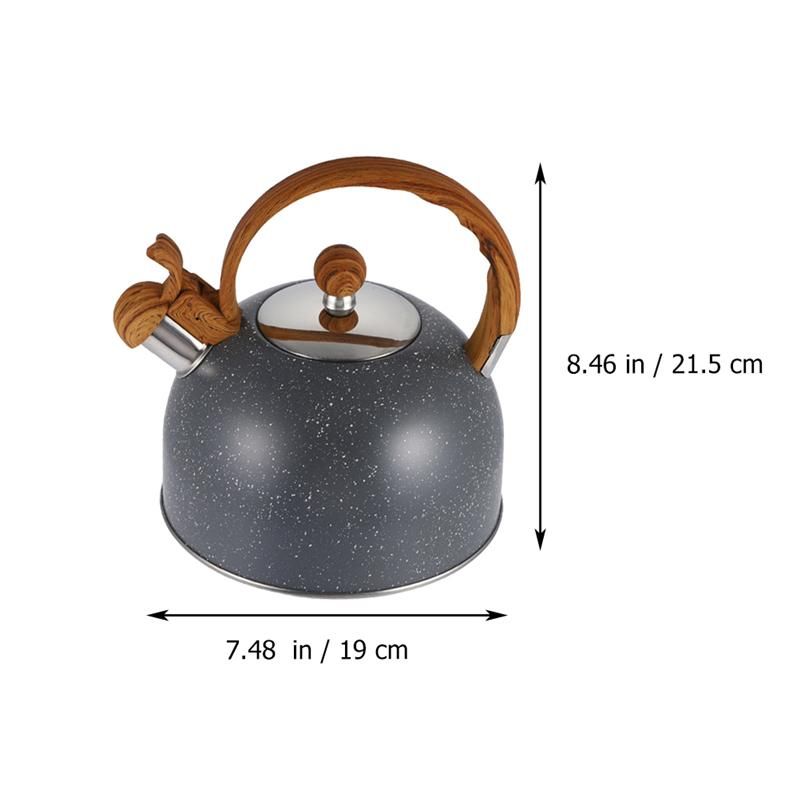 Description This water boiling kettle is designed with an automatic whistle, guaranteeing safety. Its handle can protect you from scalding. It may be widely used among different people at various situations. It can heat rapidly, not only saving your time but also saving energy. Features -Color: Grey. -Material: Stainle steel, plastic. -Size: About 21.50X19.00X19.00cm/ 8.45X7.47X7.47in. - Exquisite proce, air outlet intimate design, bace steam preure in the pot. - The body and steam liner are made of food grade Stainle Steel , high temperature resistance, heat resistance, health and safety. - The spout is huge with straight tube design, the water is powerful and can come out smoothly. - Filter with foorade material, long life, sealed filter without clogging, easy to clean. - Suitable for office, family, outdoor, travel. Excellent gift for family, friends or colleagues. Packing list