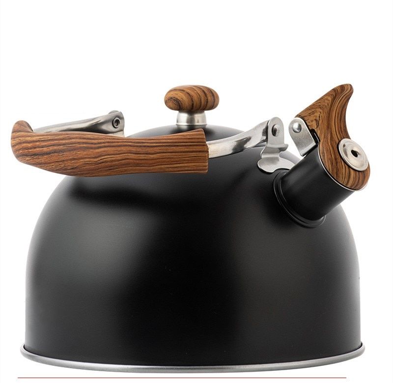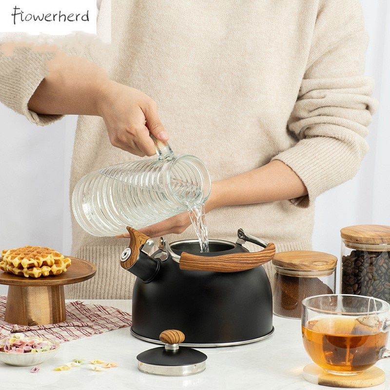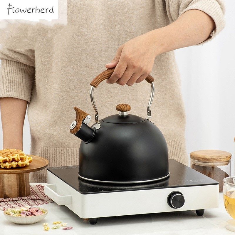 2.5L Whistling Tea Kettle Tea Pot Wood Anti-scald Handle Stainle Steel Hot Water Kettle Teapot for All Stovetops Kitchenware Large Capacity Whistling Kettle】Prime quality with safety approved stainle steel, perfect for any heat source including gas, electric, induction, halogen, and radiant stoves. 2.5L large capacity stove kettle can make tea with your family and friends. 【Perfect Whistling Sound】The loud whistle guaranteed you can hear it from another room when the water is boiled. Durable and the whistling tea kettle made of kitchen grade stainle steel, which is strongly rust-resistant and corrosion-resistant. BPA-Free. 【Save Your Time and Bill】Unlike other lower quality, lightweight stovetop tea kettles that use just one or two layers, the stainle steel teapot is made of multi-layers 18/8 culinary grade stainle steel. Le waiting and a more efficient tea or coffee brewing experience for you! 【Perfect Gift】The Thumb-Pre spout makes pouring easy - simply tip, open, and pour in a single motion. This stove top kettle includes two premium stainle steel tea strainer, perfect for brewing up loose leaf tea. Unique gift box design, ideal gift for your family and friends. The stove top teapot kettle comes with heat resistant lid and you don't need to touch any hot metal part with the ergonomic push-on pouring mechanism.