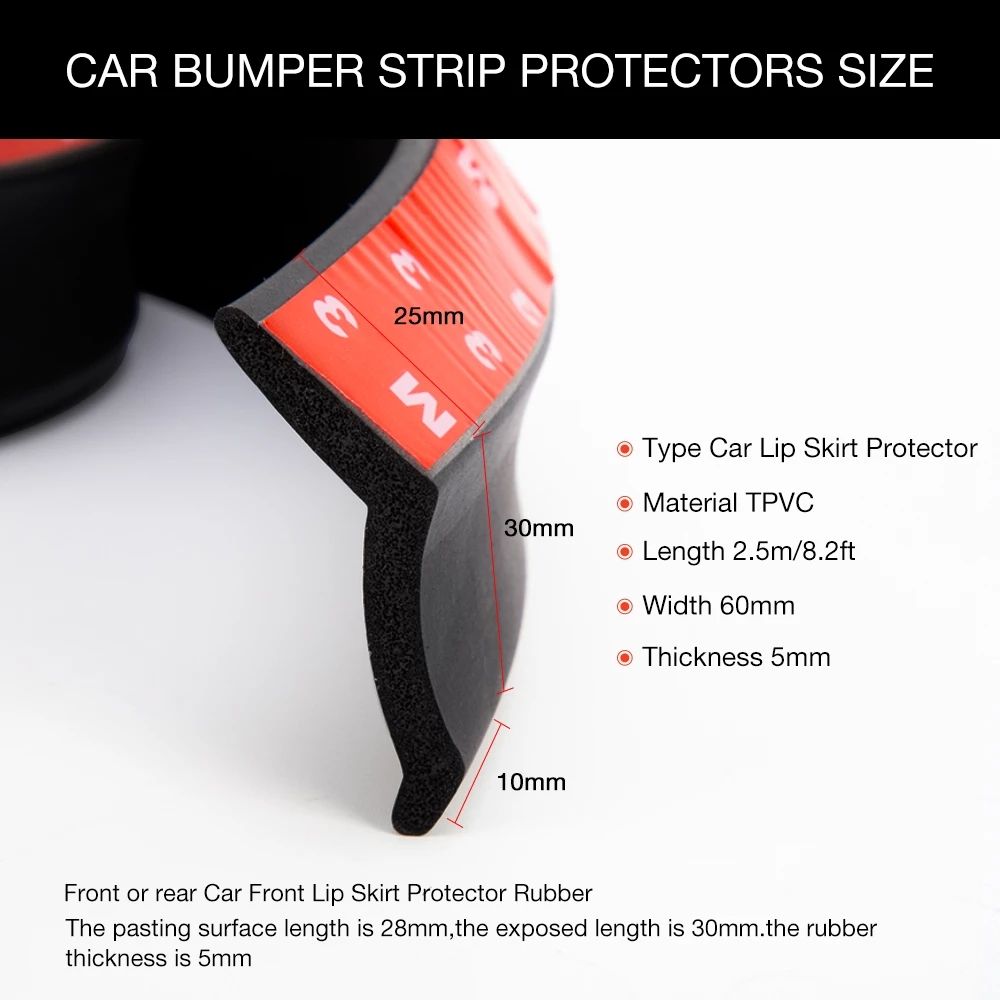 Featrue: Designed to bend and protect your paint from driveways, speed bumps and curbs. Front or rear bumper lip splitter side skirt extension lip. You can stick it on front or rear bumper, body kit, side skirt, tail fins and so on. Ultra light weight. With 3m adhesive, easy to install. Made of TPVC, durable, flexible, and bendable. Universal fitment for the most of cars, truck or SUV. Specification: Type Car Lip Skirt Protector Material TPVC Quantity 1pcs Item Color Black Length 2.5m / 8.2ft Width 60mm / 2.4" Thickness 5mm / 0.2" Net Weight 0.57kg Package: 1*Car Lip Skirt Protector NOTE: 1,Please keep the surface clean and dry, no sand/dust or put some adhesion promoter (Without)at it before installation. 2,Don't drive on the highway in 3 days after installtion 3,Do not touch water after pasting within 72 hours 4,it is difficult to avoid the extrusion during the transportation, but it doesn't affect the use.