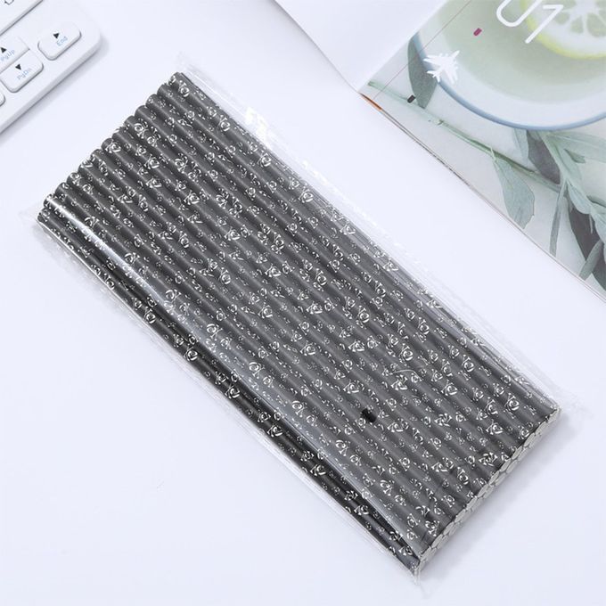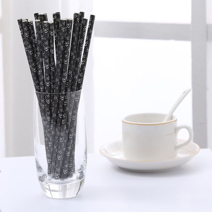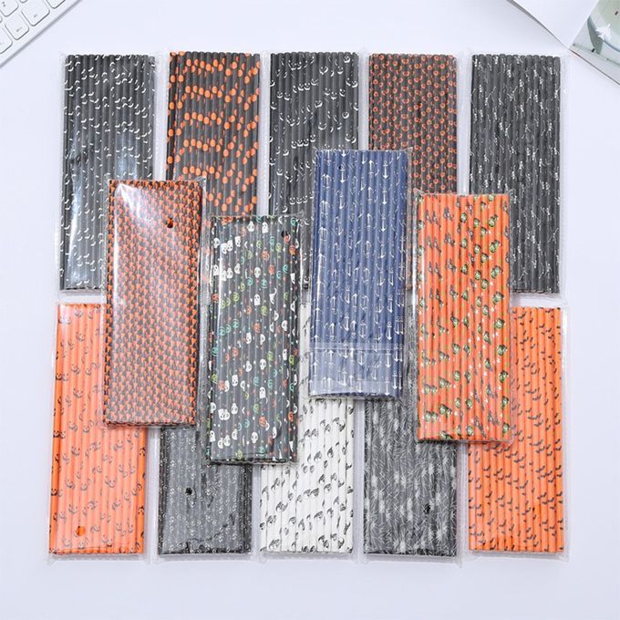 25p S De Orative Paper Straws Halloween De Oration Paper Straws Party-Black-#09