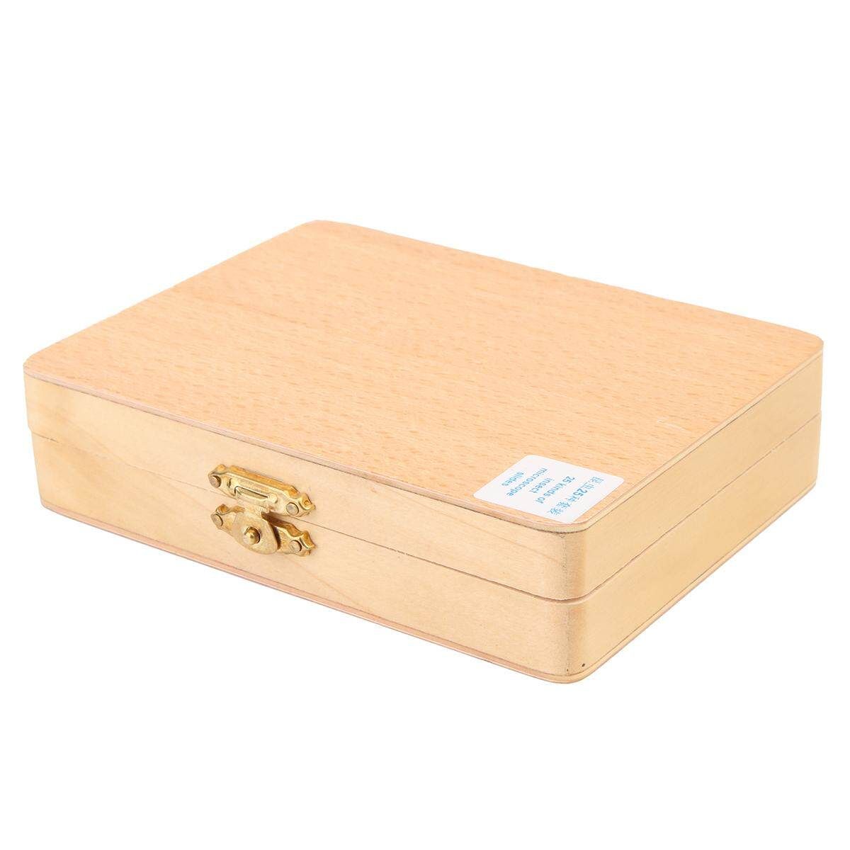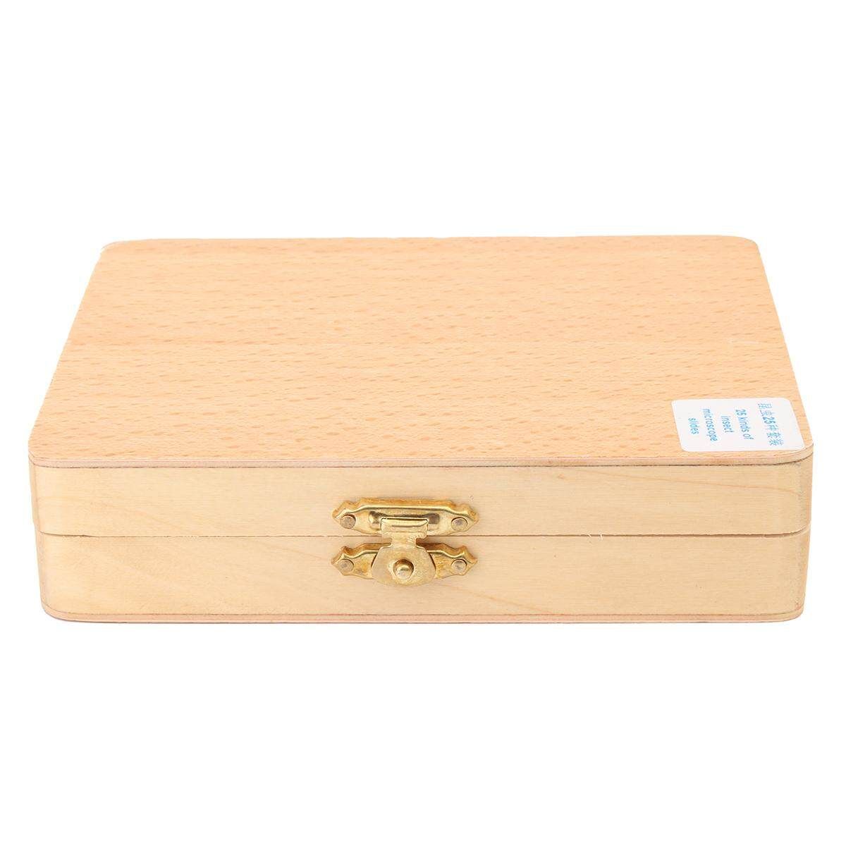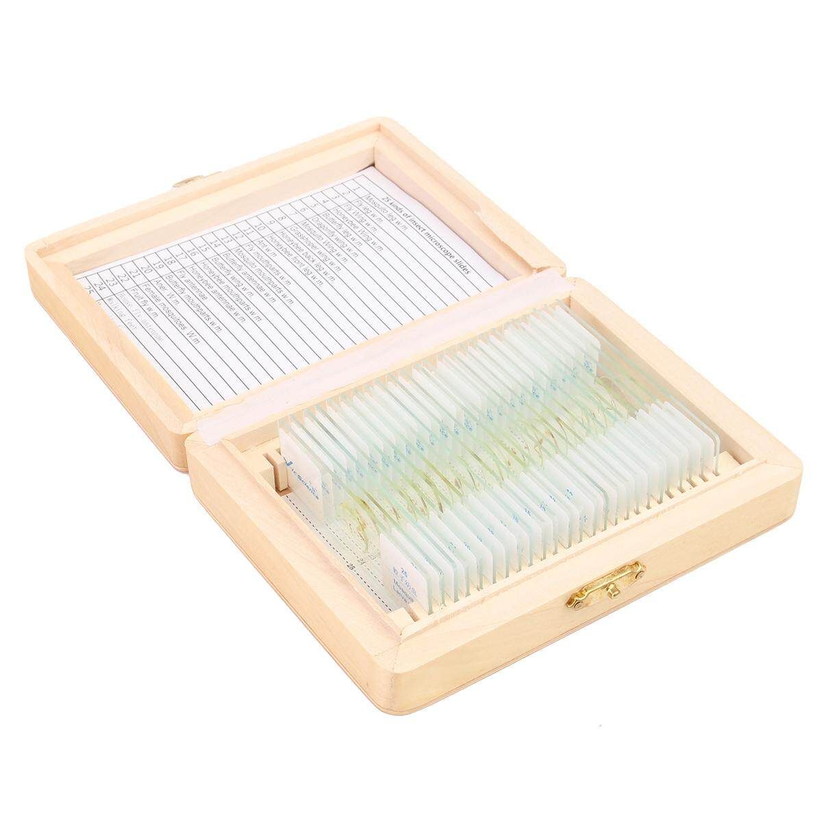 25Pcs Prepared Basic Science Microscope Glass Slides Sample With Wooden Box