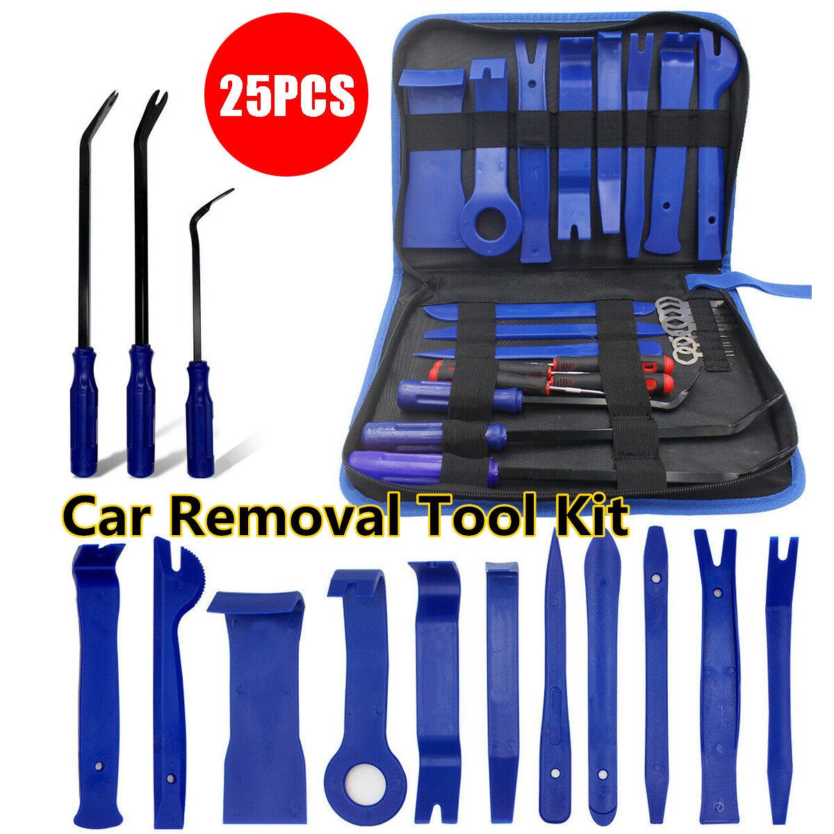 25 contain almost all the tools needed for assembly and disassembly. Suitable for disassembling car audio/radio, door panels, instrument panels, fixing clips, roof lights, windows, interior fittings.