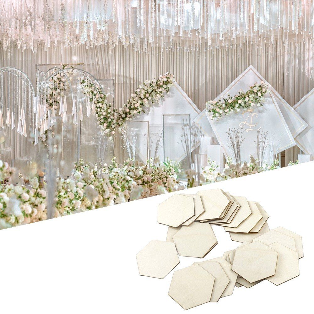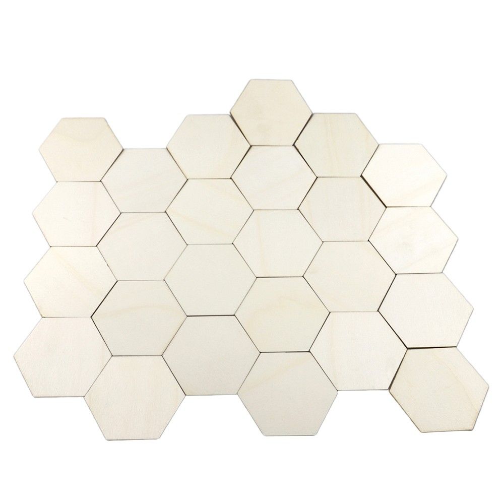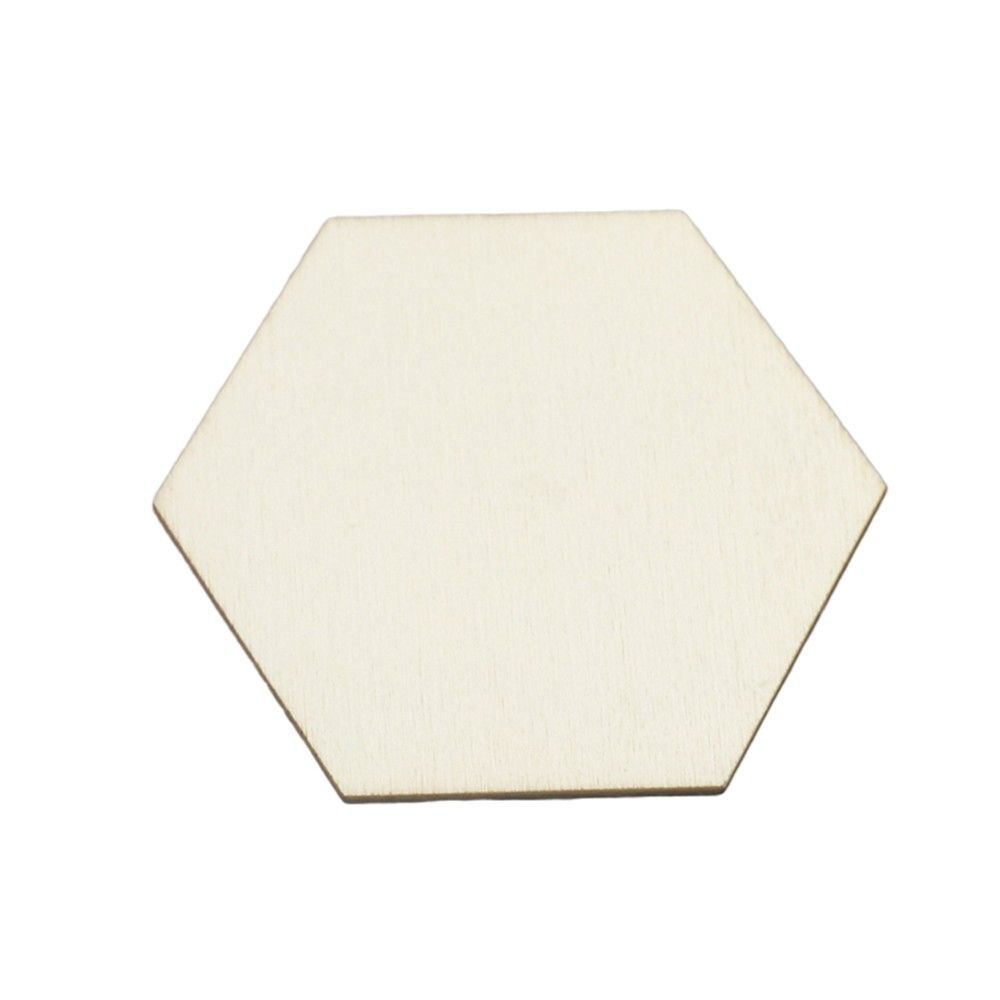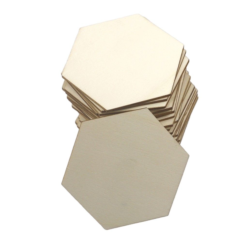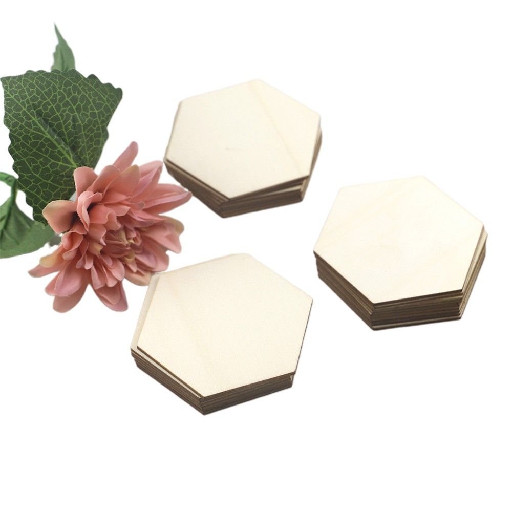 The 25pcs hexagon wood slices are blank for your diy to write and paint to be as home p-endant or wedding decoration, polished surface, environmental friendly.
