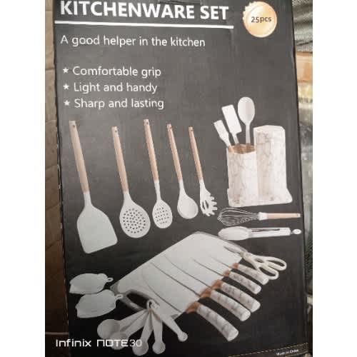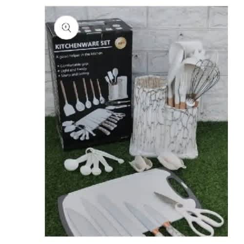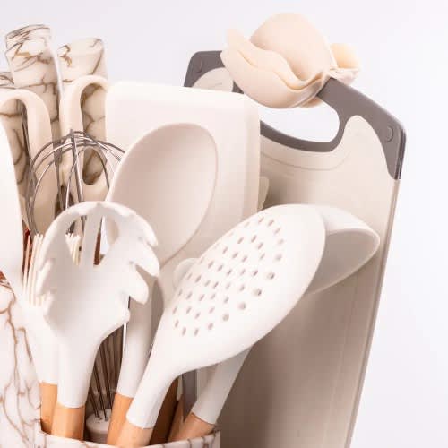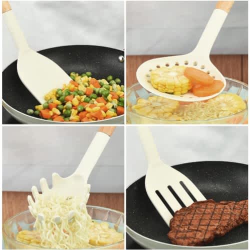 Buy 25pcs Silicon Kitchenware Set / Silicon Cooking Spoon Set With Wooden Handle - White in Nigeria