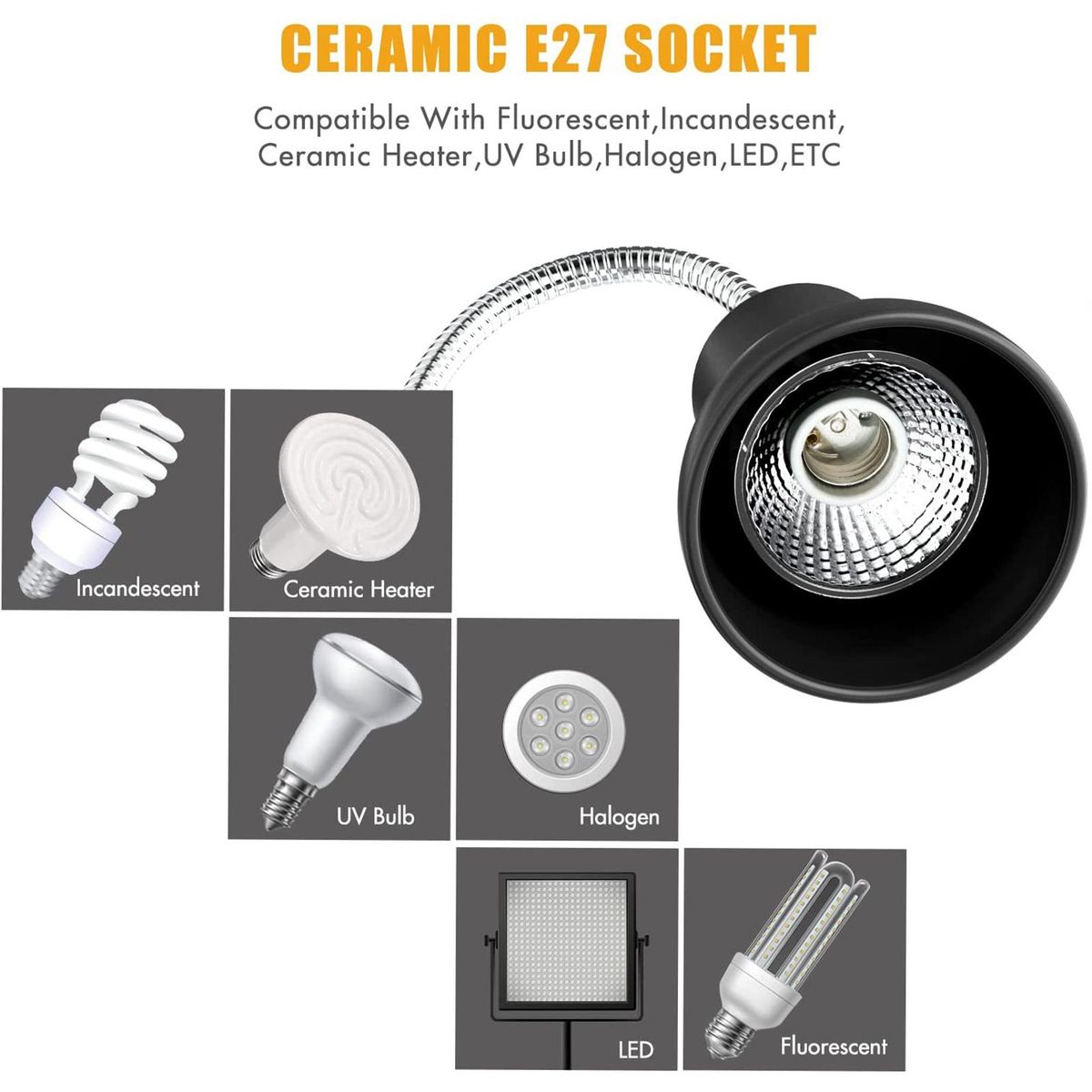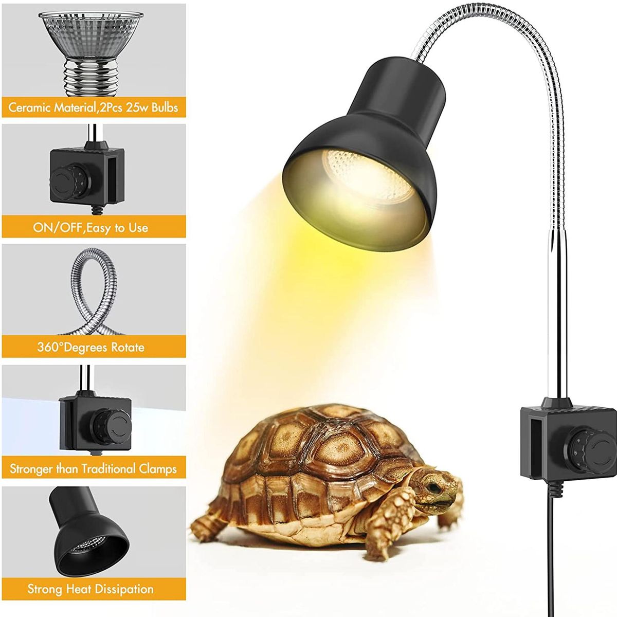 Buy 25W Heat Lamp with Holder UVA UVB Basking Lamp with 360° Rotatable Clip & Power Adapter for Reptiles, Lizard, Turtle Snak Aquarium in Nigeria