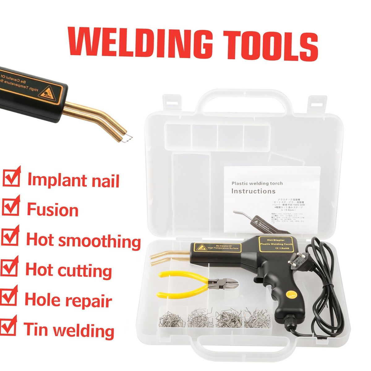 This welding repair tool kit is designed to repair plastic parts of the car.