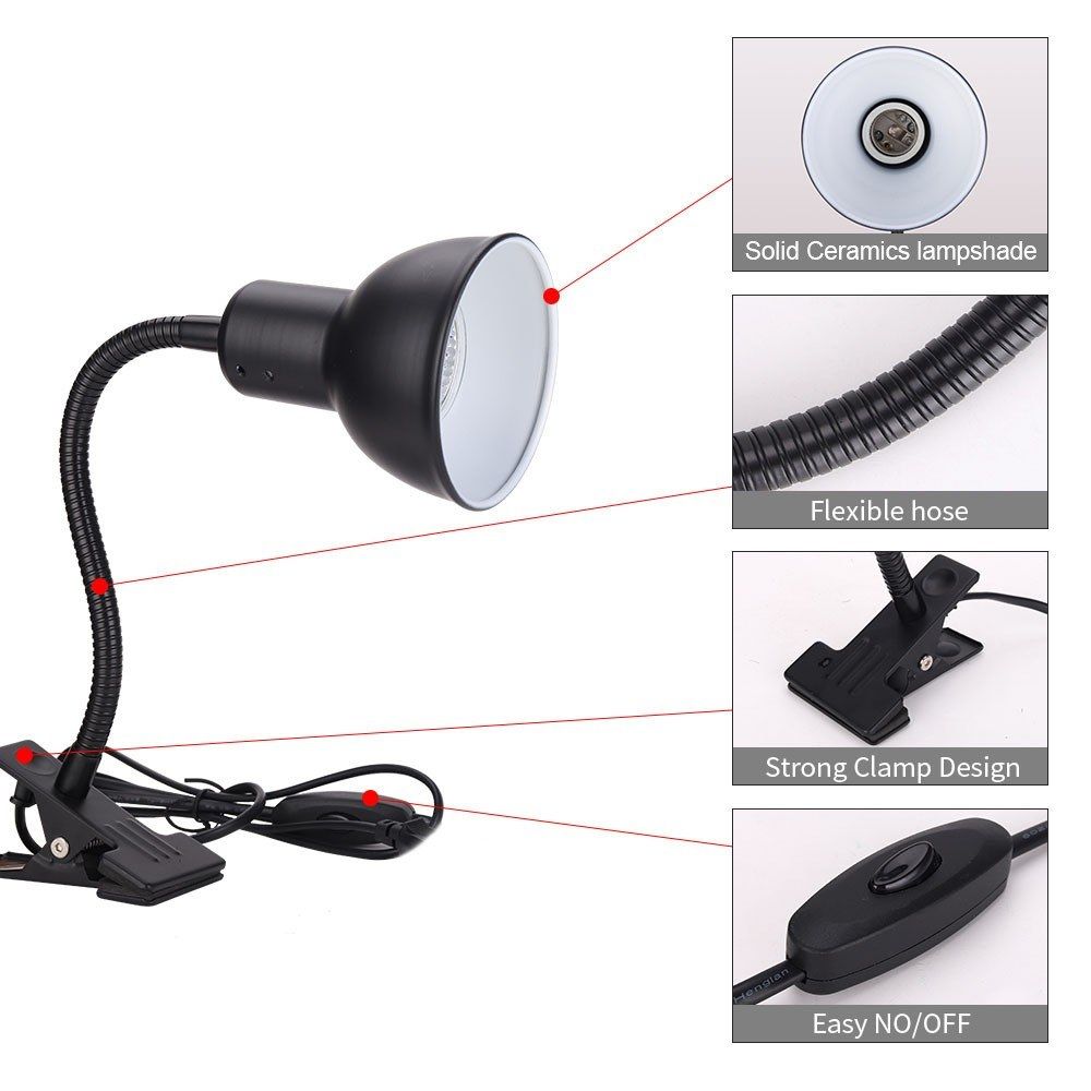 Adjustable and Practical: Adjustable light, with a clip, easy to install and practical for use. The lampshade can prevent animals from scalding, the ceramic lampshade can withstand 200W bulbs, and the bulb is replaceable.