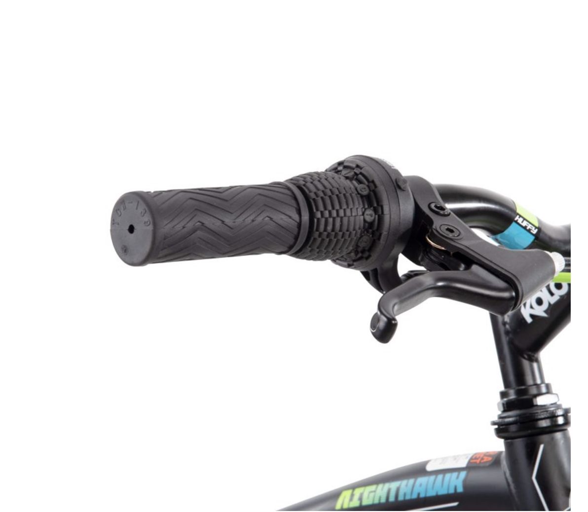 You'll be ready for on-road and off-road adventures with this Huffy 26" mountain bike. The 18-speed Nighthawk provides solid performance with front suspension that absorbs bumps and provides the proper amount of response on uneven surfaces. Choose from 18 speeds with the easy-to-use twist shifting system, for dependable gear changes on this Huffy 26" mountain bike. The front disc brake and rear alloy linear pull brake provide sure stopping control. Lightweight alloy rims are weather-resistant for improved performance. A padded ATB saddle is designed for comfort, plus the quick-release binder clip makes it easy to adjust or remove at any time. A slight-rise handlebar with Krayton grips give a performance look and comfort feel to your ride. This Nighthawk is one tough bike — as it waits for your next outdoor adventure. From Huffy, We Make Fun.
