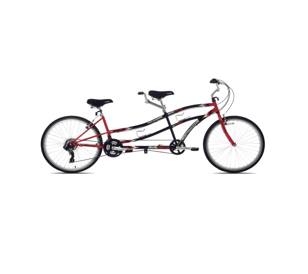 Enjoy a bicycle built for two without breaking the bank with the Northwood 21-speed DualDrive Tandem bike, the durable, high quality bike is comfortable and stylish with a pair of soft gel saddles and extra-wide, bump-gobbling 2.1 inch tires. The components, meanwhile, are built for long lasting use, including the 22-speed shimano drive train, best of all, the frame features low stand low stand over height (29 inches in front and 20 inches in back), makinyit easy for both riders to hop on.