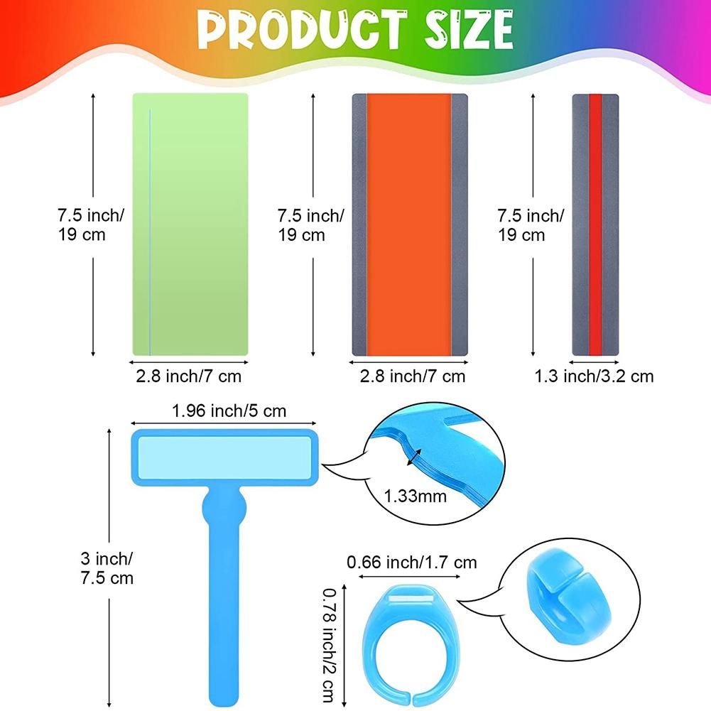 Compact for Carrying: the guided reading highlight strips come in 2 different sizes, respectively about 7.5 x 1.3 inches/ 19 x 3.2 cm and 7.5 x 2.8 inches/ 19 x 7 cm; Besides, the finger focus highlighter is about 1.96 x 3 inches/ 5 x 7.5 cm, lightweight and convenient for you to use and take