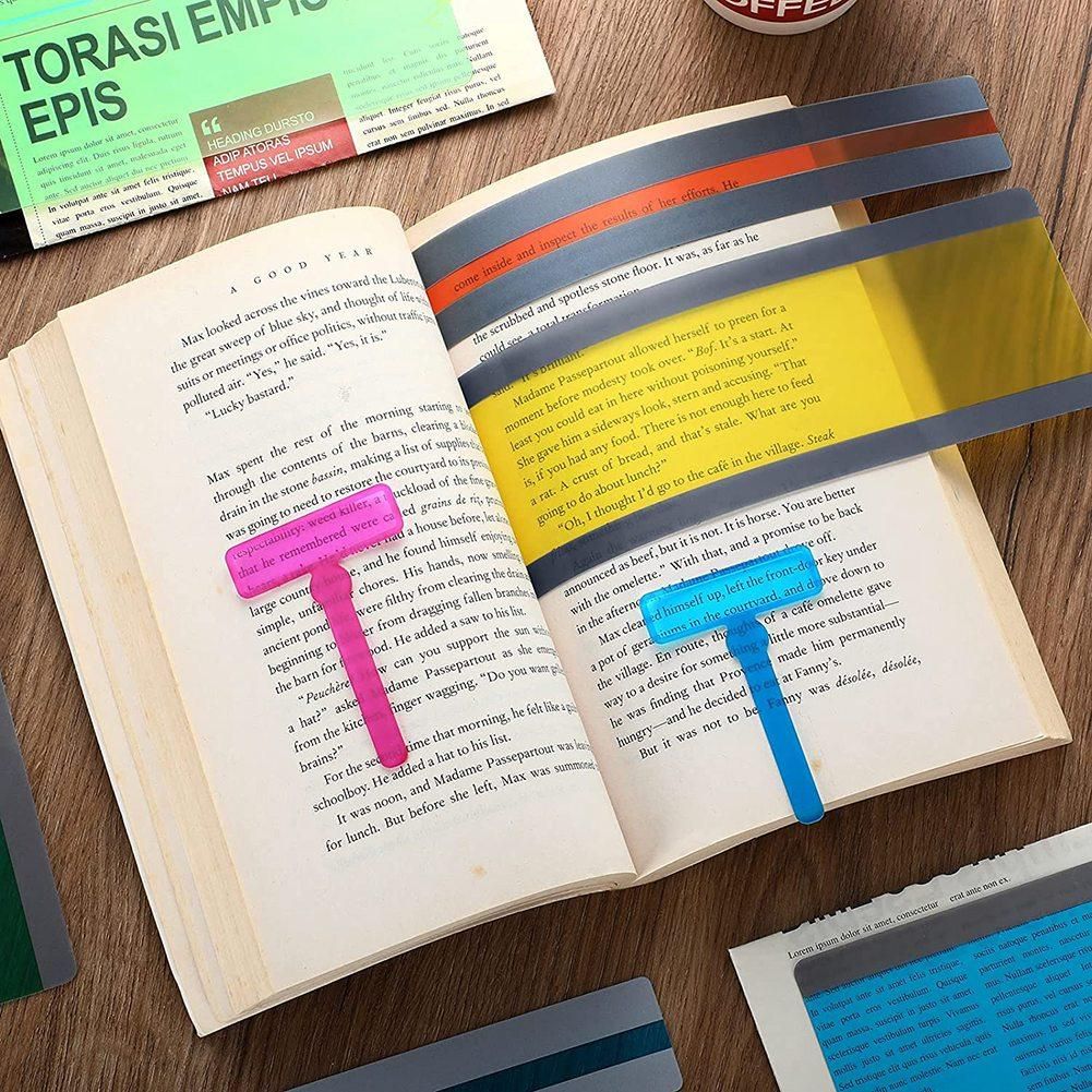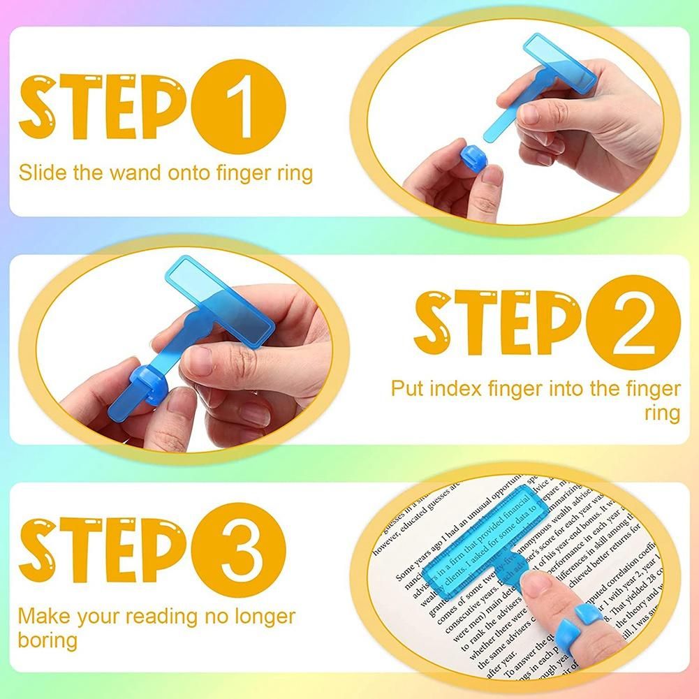 Convenient to apply: The reading strips and rings can be adopted together, put your finger into the ring, then point at where you can't concentrate. In addition, the reading strips can be held on the book as bookmarks.