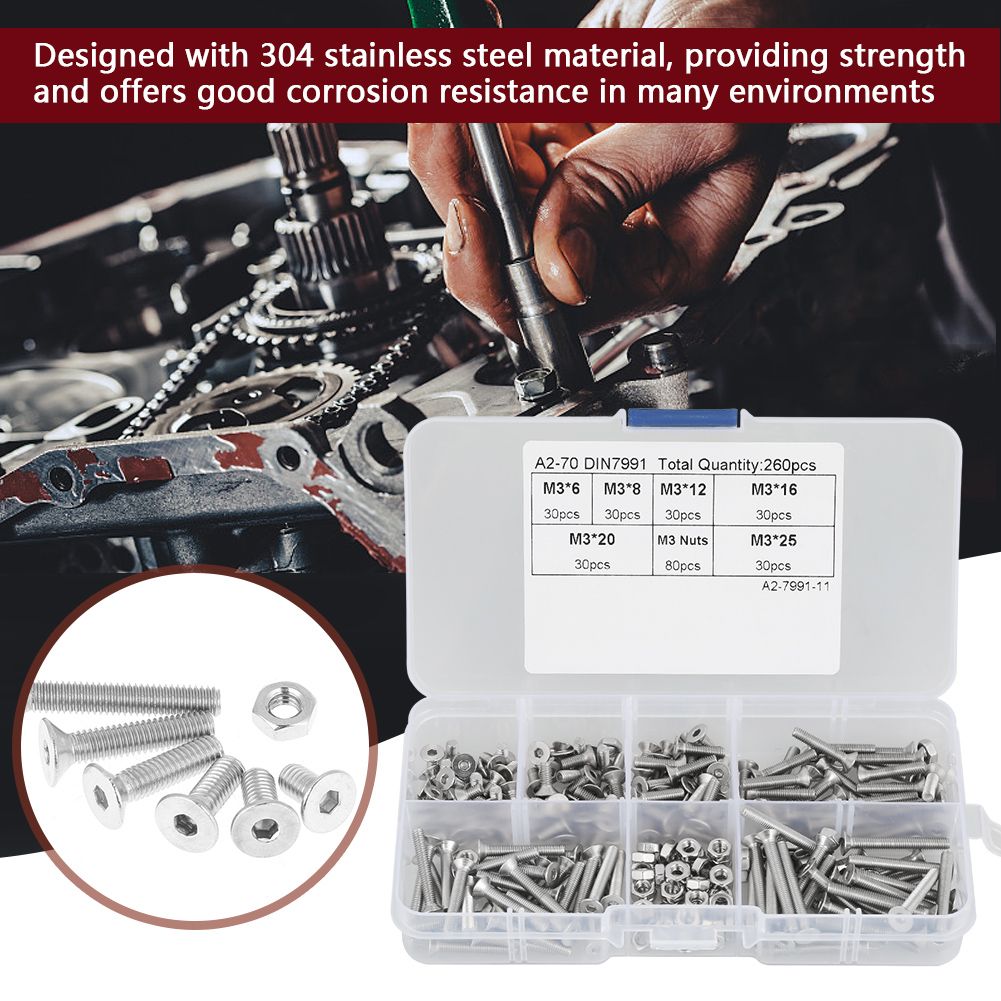 Package Includes: 1 x 260pcs /set screws with box