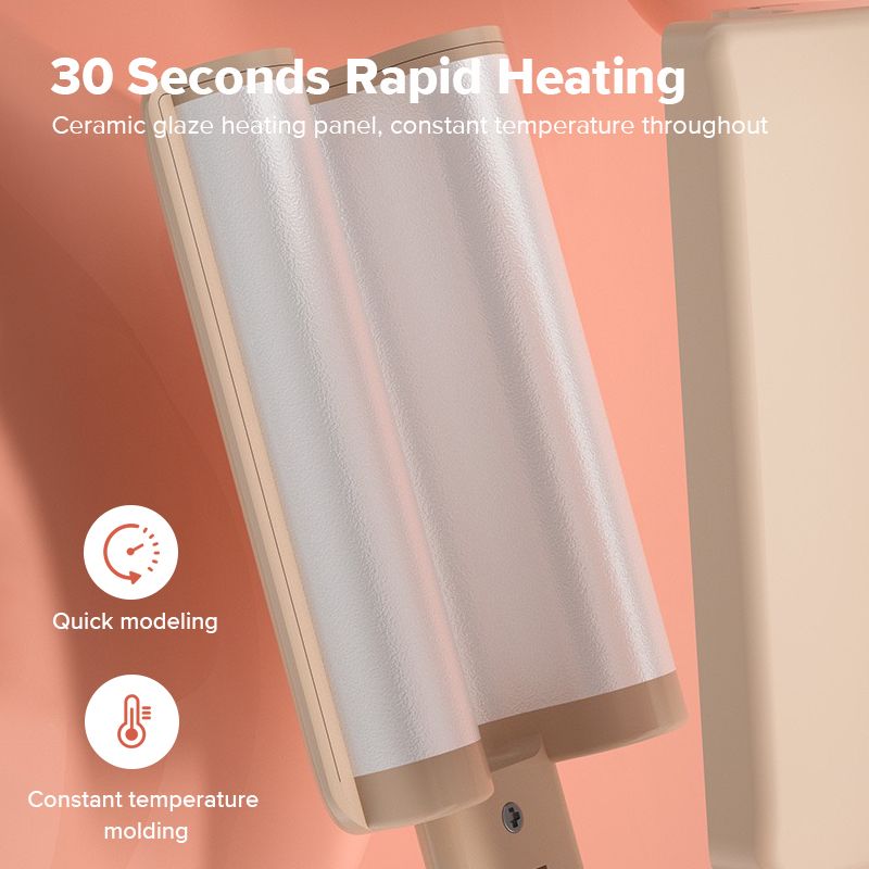 1.This product is a Widened heating panel Splint Anion hair curler,Safe and anti-scalding Simple to use,Won't pull hair.Ceramic coating provides amazing shiny and healthy finishes.Rapid build shiny curly hair modeling for you,heating up to 100°C just needs about 15 seconds.it has uniform heating technology for curler hair.